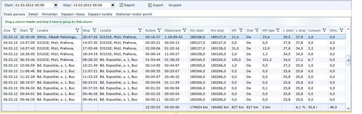 Raportul foaie de parcurs contine urmatoarele date: